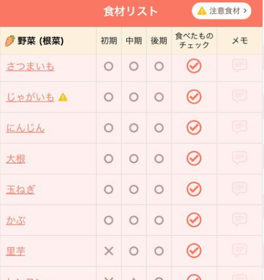 管理栄養士監修により、まだ避けた方がよい食材や、アレルギーを起こす可能性がある食材について詳しく知ることができ、安心感があります。