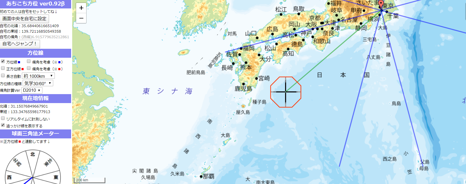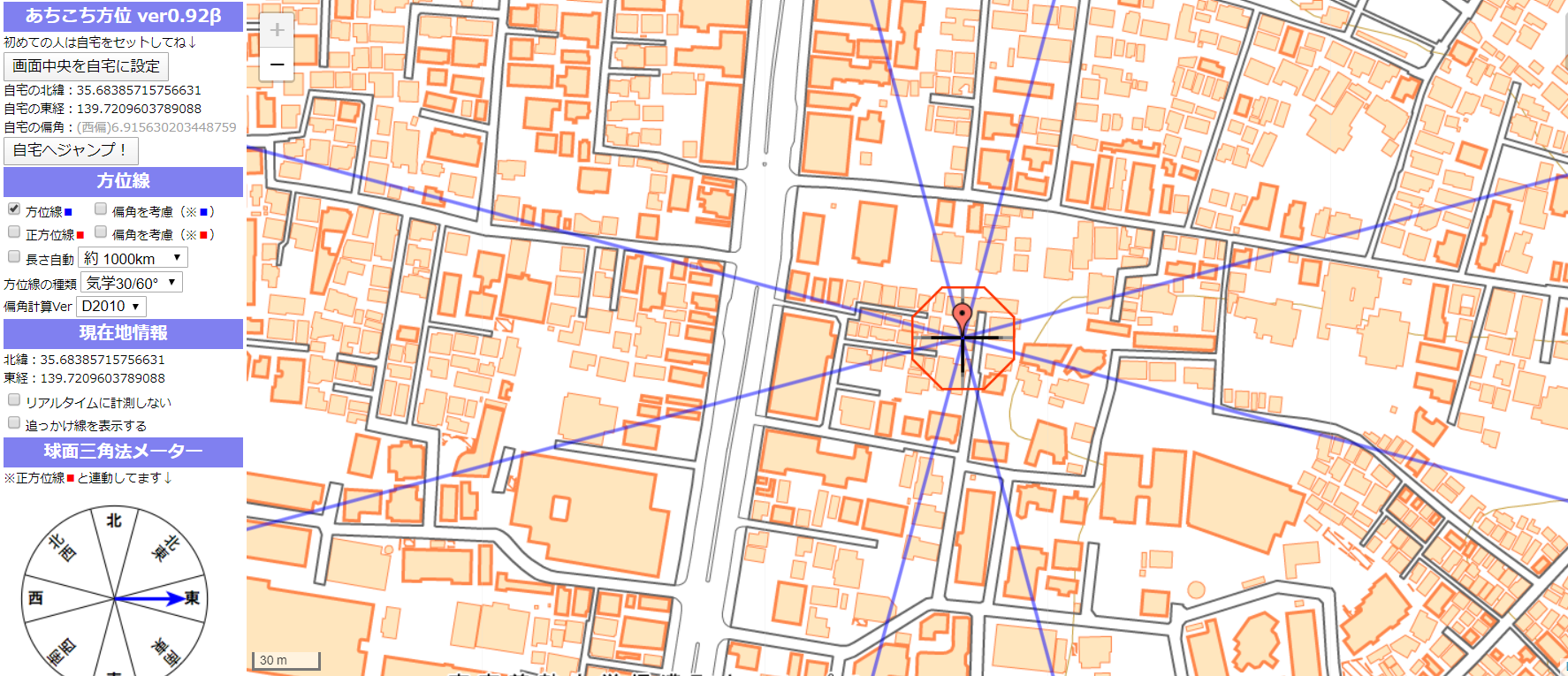 方位取りは、出発する場所が大切であり、長期滞在している自宅を起点としますので、方位取りには外せない自宅からの方位がわかるので、重宝するはずです。