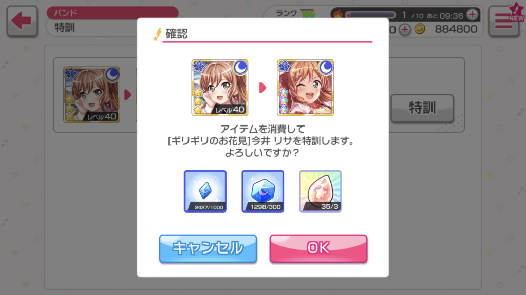 特訓はレベルMAXで星3つ以上のキャラクターが行える「進化」のようなもので、