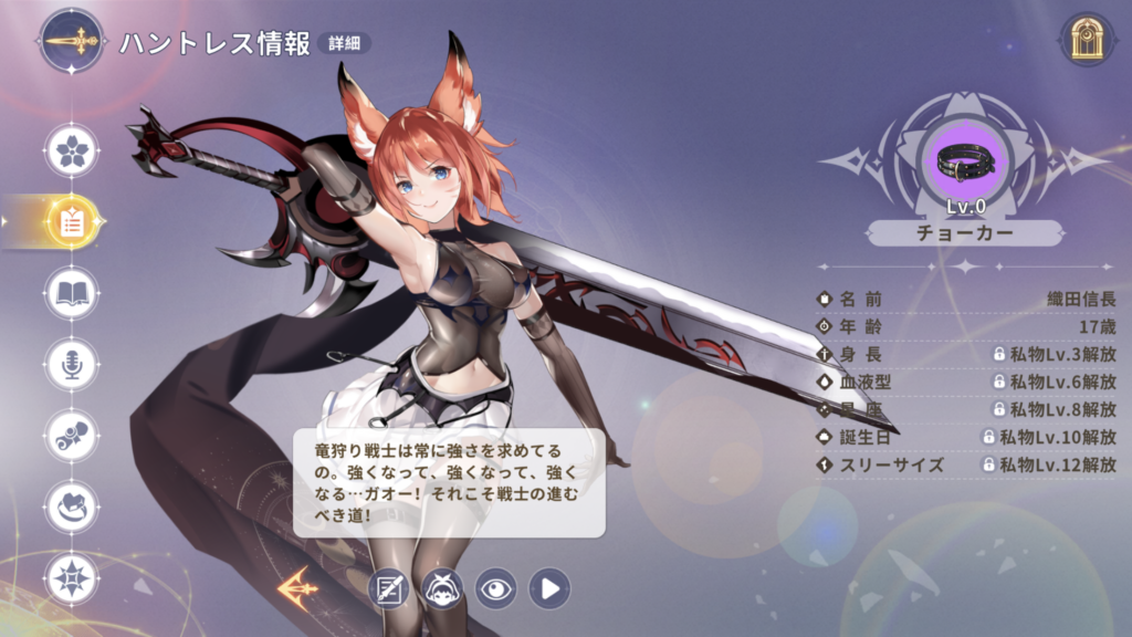メイン画面やハントレス選択画面では、ハントレスが上下に揺れてかなりセクシーでドキドキものです。