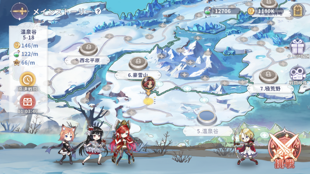 進めていくと時間あたりで手に入る放置報酬も増えてもうらえるので一石二鳥となります。