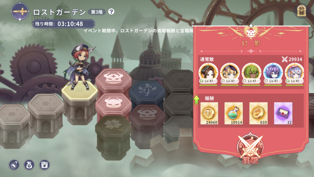各階をクリアするとジェムやキャラ強化素材を入手することができます。