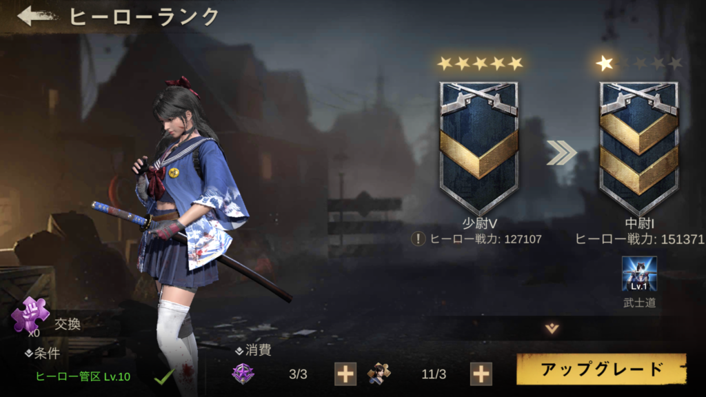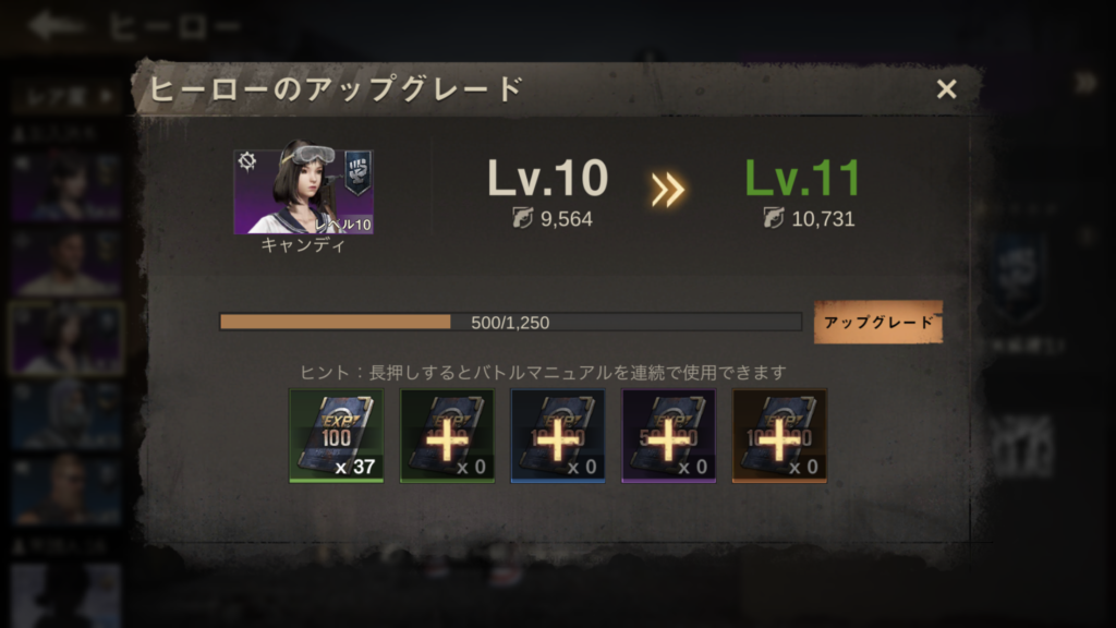 ヒーローは、レベルアップとランクアップをすることで戦力が上がるので