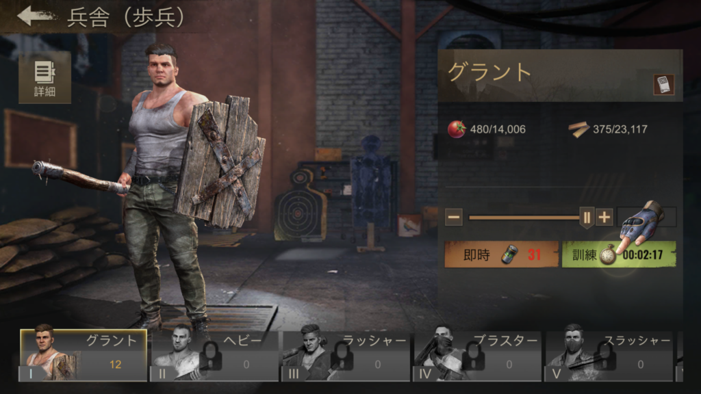 施設レベルを上げていくとグレードの高い兵士を訓練することができるので